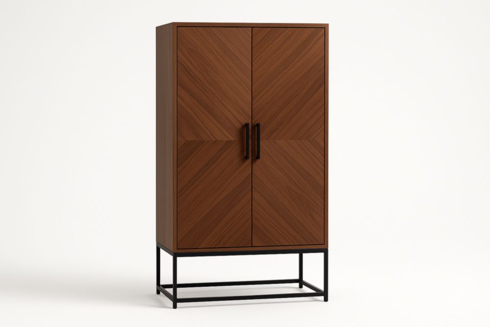 Credenza in Legno Massello e Rattan con Tre Cassetti e Quattro Ante